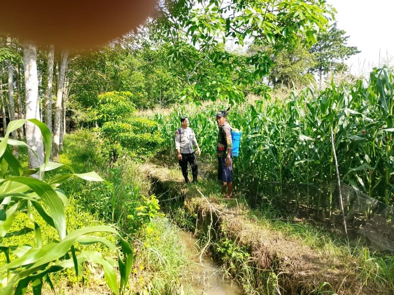 Dalam kegiatan tersebut, Briptu Yoga Pratama turun langsung ke lahan pertanian untuk melihat perkembangan tanaman jagung sekaligus membantu petani melakukan pengecekan kondisi tanaman, mulai dari kesehatan daun, potensi serangan hama, hingga kebutuhan pemupukan. Ia juga berdialog dengan para petani untuk mengetahui kendala yang sering muncul selama proses perawatan dan memberikan imbauan terkait pola pemeliharaan yang efektif.