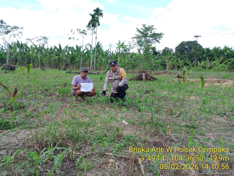 OKU TIMUR, RETAMA NEWS – Semangat Bhabinkamtibmas Polsek Cempaka dalam mengawal ketahanan pangan tak surut meski di hari libur. Usai memantau pertanian di Minanga Besar, petugas langsung bergerak menyisir desa tetangga untuk memastikan program swasembada pangan berjalan merata di setiap fase tanam.