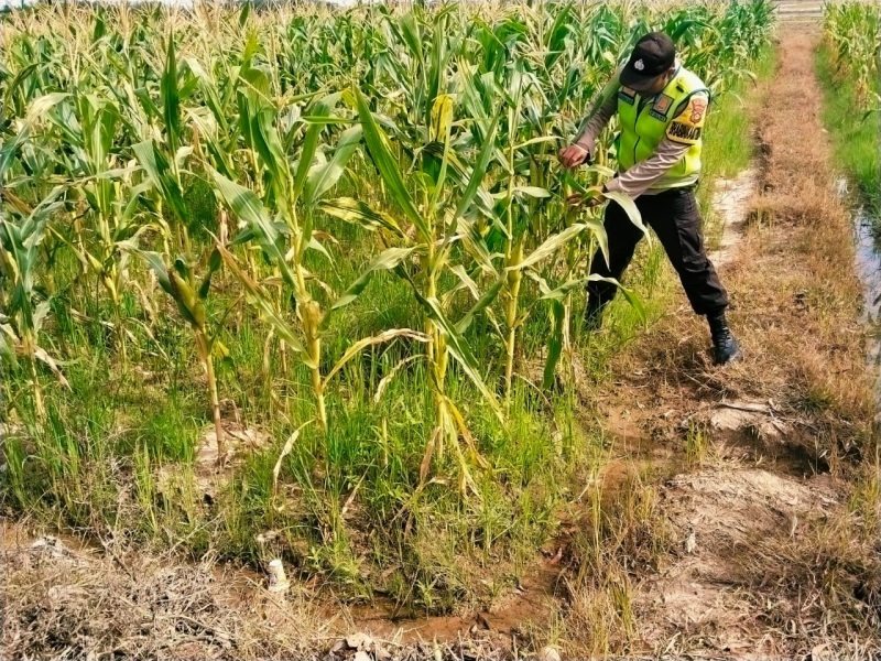 Brigpol Burhannudin secara rutin menyambangi lahan-lahan pertanian untuk memantau perkembangan tanaman secara berkala. Ia memastikan bahwa: