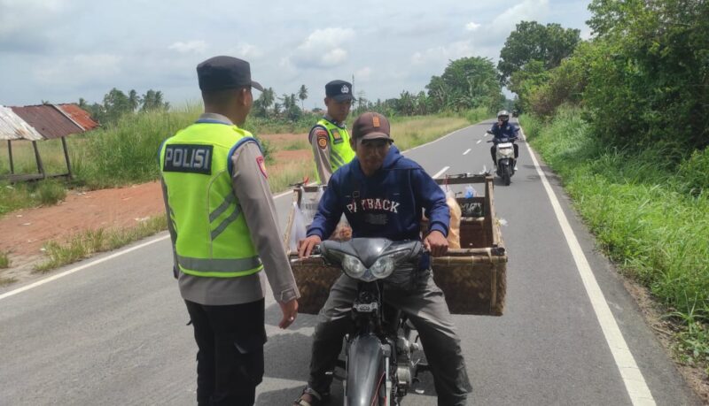 “Sabtu siang ini mobilitas arus silaturahmi warga di jalur Harisan dan Sukabumi terpantau sangat padat. Kami hadir melaksanakan razia selektif dengan kekuatan lima personel untuk memastikan warga tetap mengutamakan keselamatan di jalan raya. Pemeriksaan ini juga kami lakukan untuk menutup ruang gerak pelaku tindak pidana 3C yang sering memanfaatkan kelengahan di suasana Lebaran,” tegas Aipda Heri Sumanto di lokasi kegiatan.