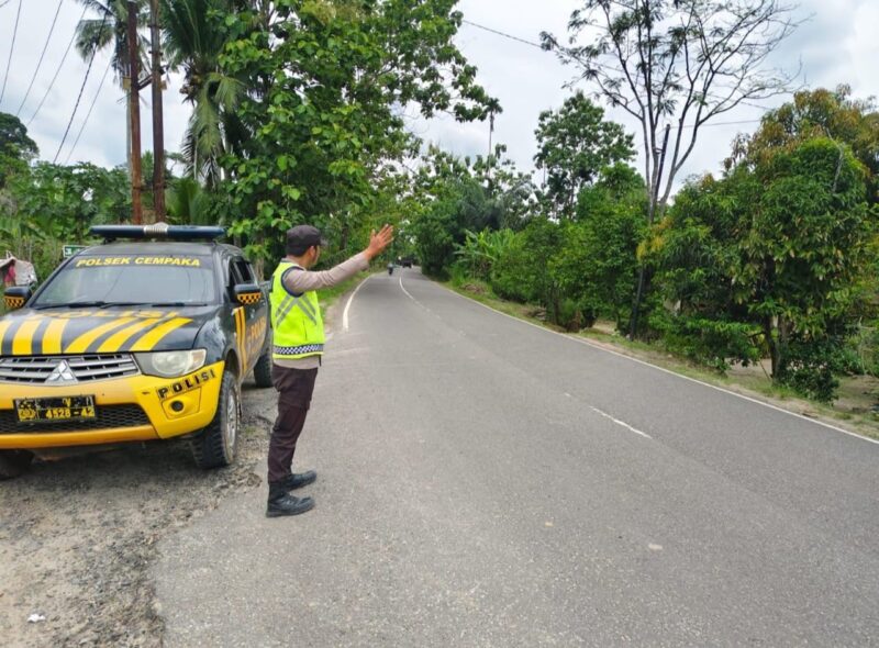 Jaga Kondusivitas Jumat Sore, Empat Personel Polsek Cempaka Sisir Titik Rawan 3C di Desa Cempaka