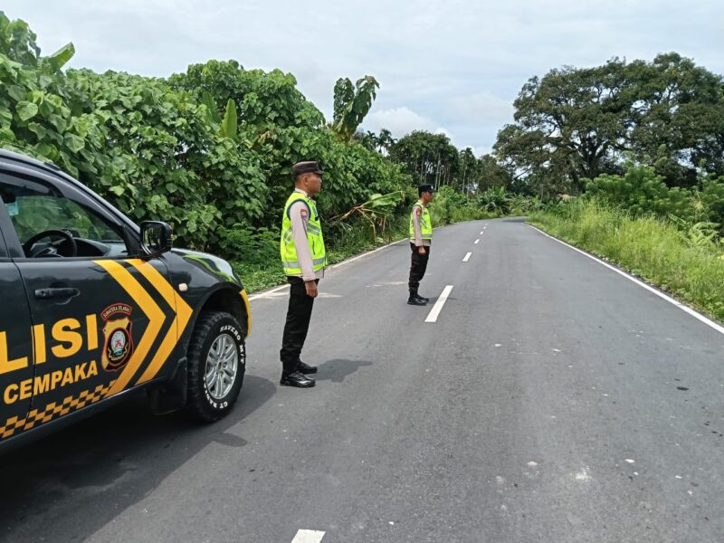 Jaga Kondusivitas Jumat Sore, Empat Personel Polsek Cempaka Sisir Titik Rawan 3C di Desa Cempaka