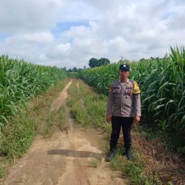 Dalam giat tersebut, Brigpol Muslih meninjau perkembangan tanaman jagung milik warga untuk memastikan proses pertumbuhan berjalan sesuai dengan fase yang diharapkan. Petugas memastikan bahwa perawatan, mulai dari pemupukan hingga pengendalian organisme pengganggu tanaman (OPT), dilakukan secara tepat guna menjamin hasil panen yang berkualitas.