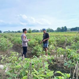 OKU TIMUR – Tak hanya menjaga keamanan pemukiman, aparat Kepolisian kini semakin aktif bersinergi dengan sektor pertanian. Brigpol M. Muslih, personel Polsek Semendawai Suku III, melaksanakan giat pendampingan dan monitoring langsung di lahan perkebunan terong milik warga Desa Suka Mulya, Kabupaten OKU Timur, Rabu (28/1/2026).
